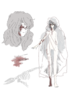 痩せた体と全身の痣を覆うように、赤黒く染まった白い布を常に纏っている。両目の眼球は失われていて盲目。喉も潰れ声はとてもか細い。