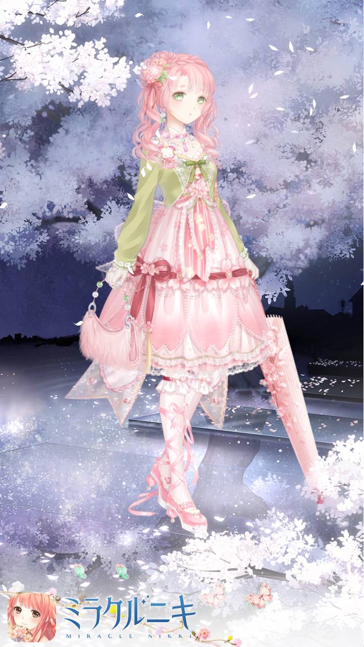 和ロリ風に、三色団子カラーでコーディネートしてます。