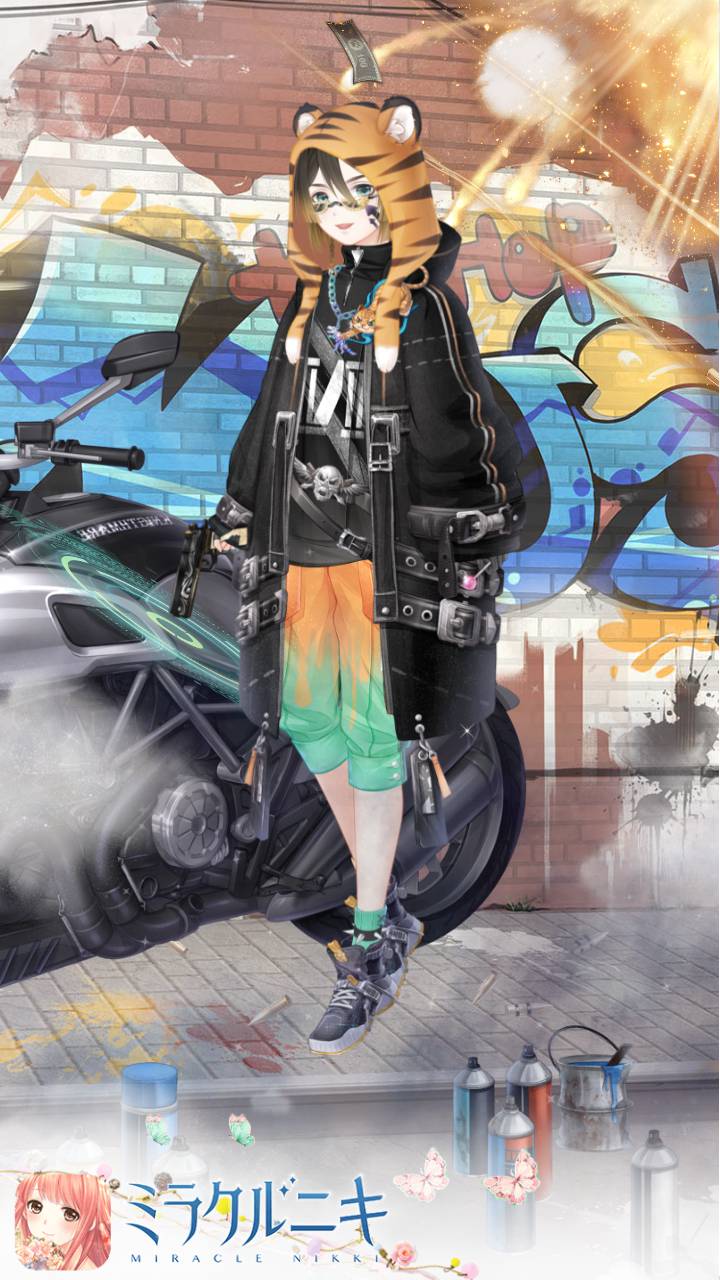 クールな黒アイテムに元気なオレンジとグリーンのアイテムが映えててかっこかわいい♡