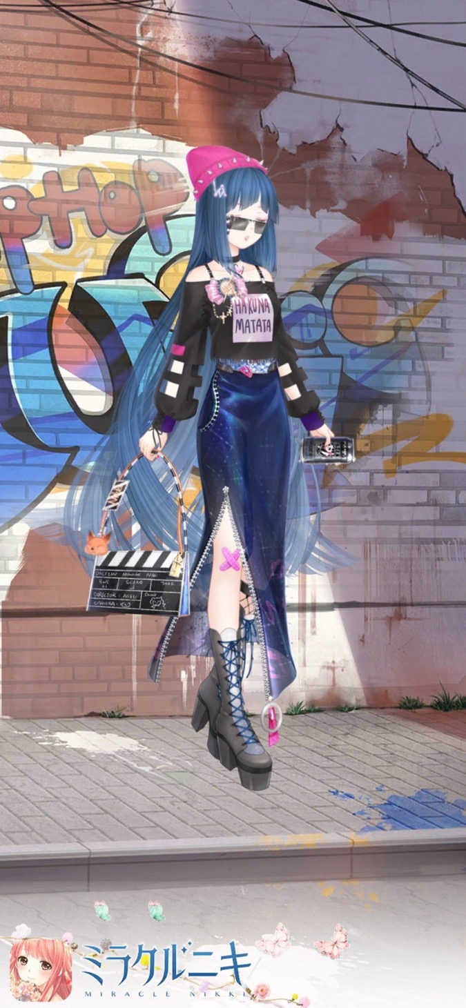 青黒系アイテムを中心に濃いピンクが映えるキュート且つカッコイイコーディネートを目指しました。