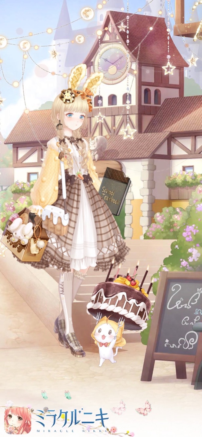 ワッフルうさ耳が馴染みつつ目立つよう髪型はシンプル可愛い金髪おさげに。