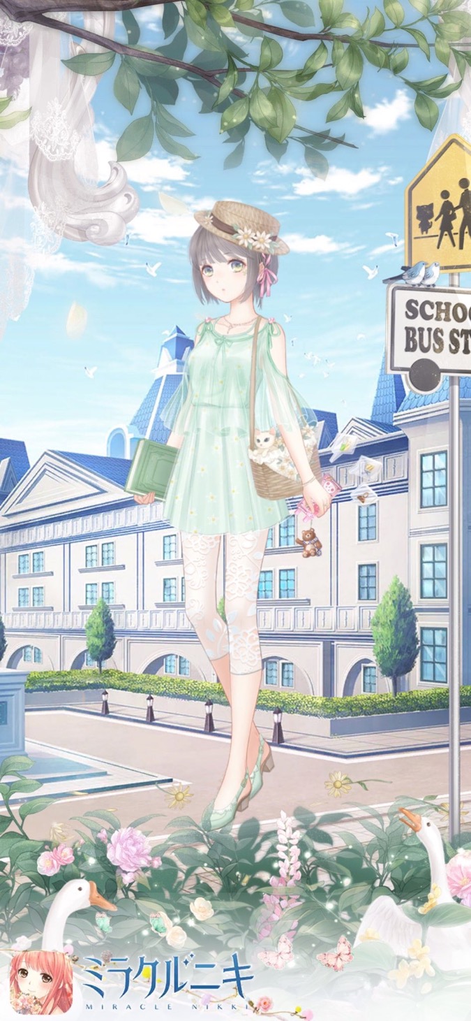 デイジーっぽいアイテムでまとめた春コーデ。カラーリングも春らしい緑・桃・白を使ってます。