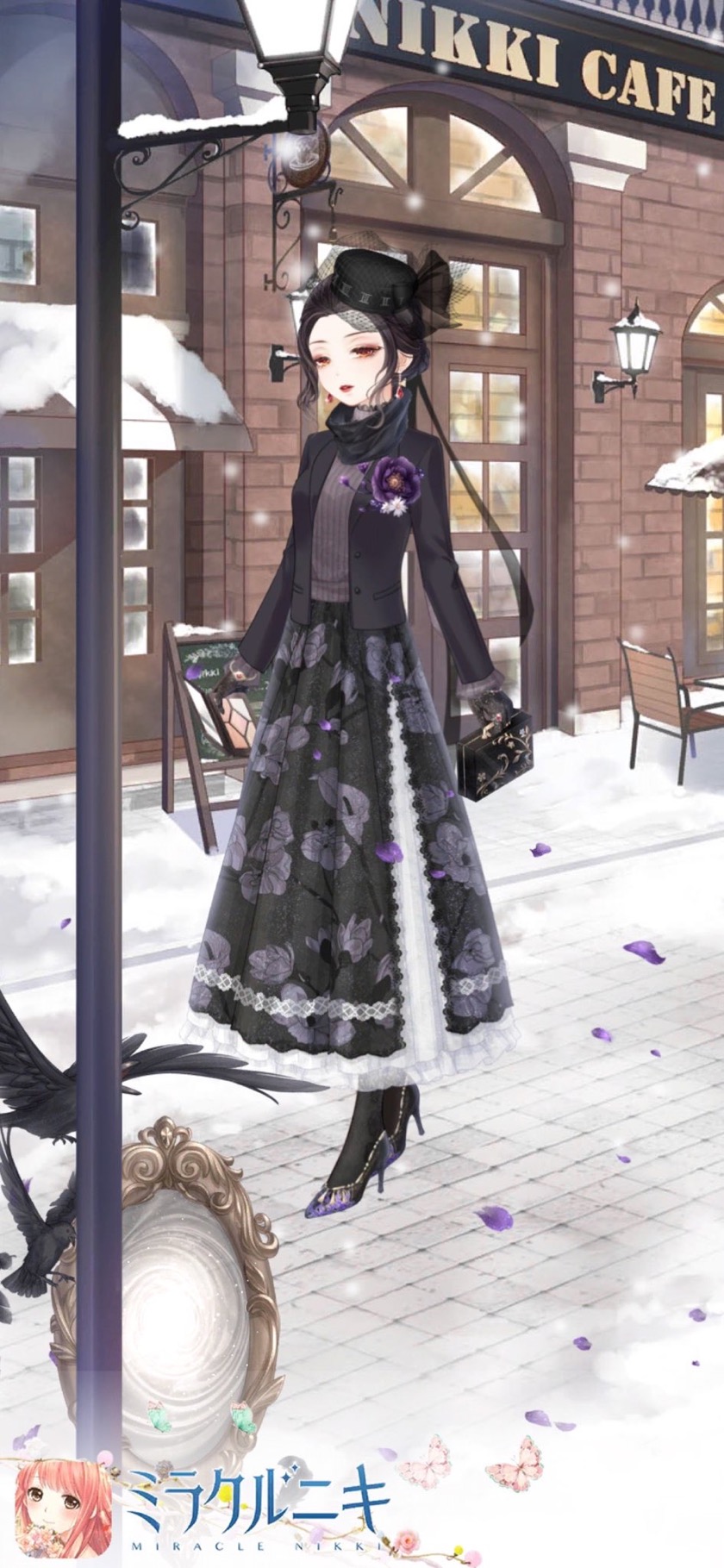首元を出来るだけ黒のスヌードとレースアイテムで覆うことにより女王らしくしてます。