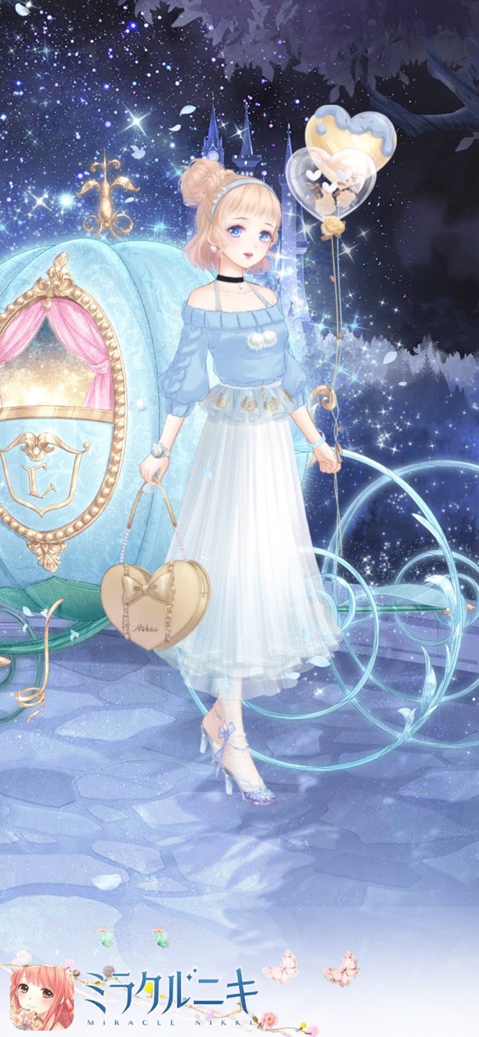 シンデレライメージのコーディネート。らしさを出す為にお団子付きの髪型に。