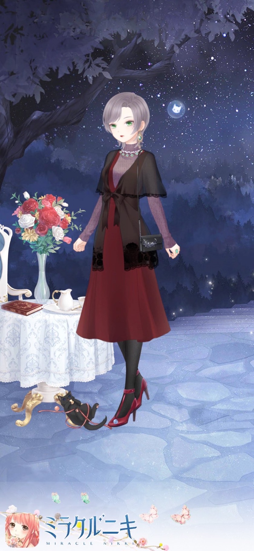 艶がありアンニュイな雰囲気なので髪飾りは赤のリボンにはせず、あえて帽子に。