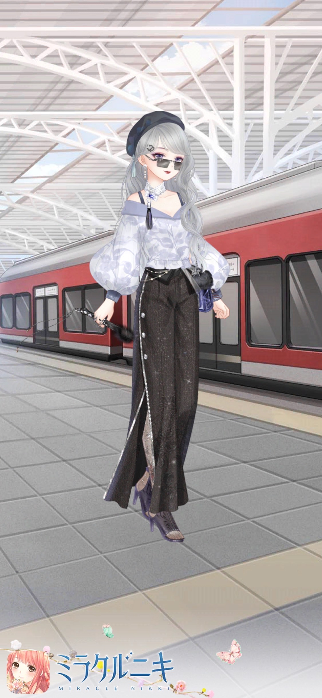 スカート裾から見えるタイツがお気に入り。スカートの金具がシルバーなので小物もシルバーに。