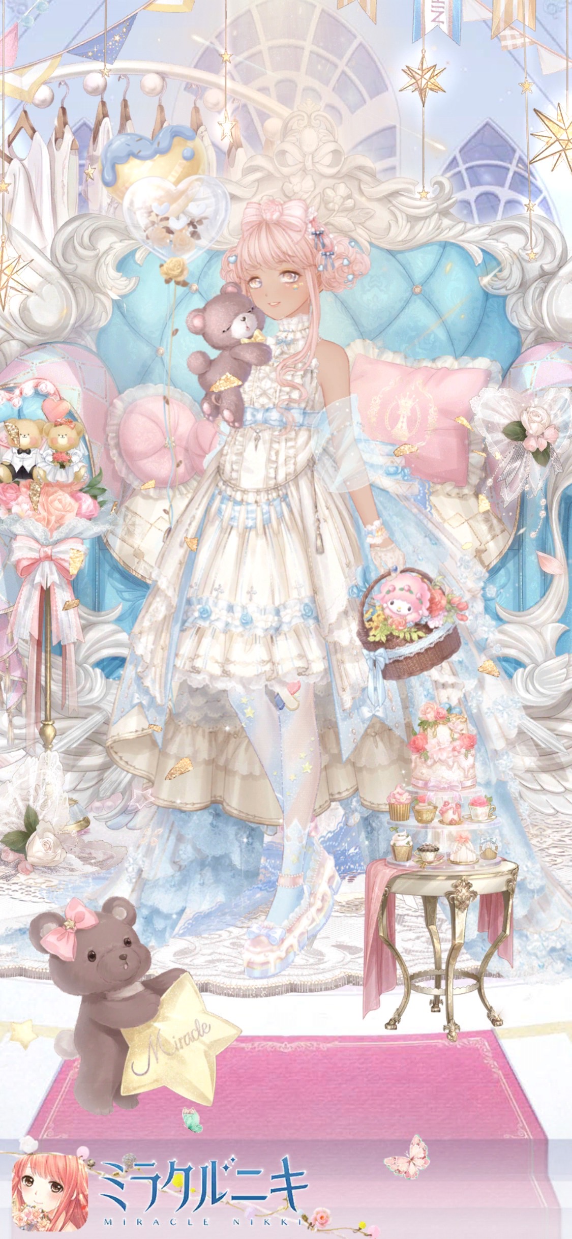 白基調に淡い青を加えた褐色ロリィタコーディネート。