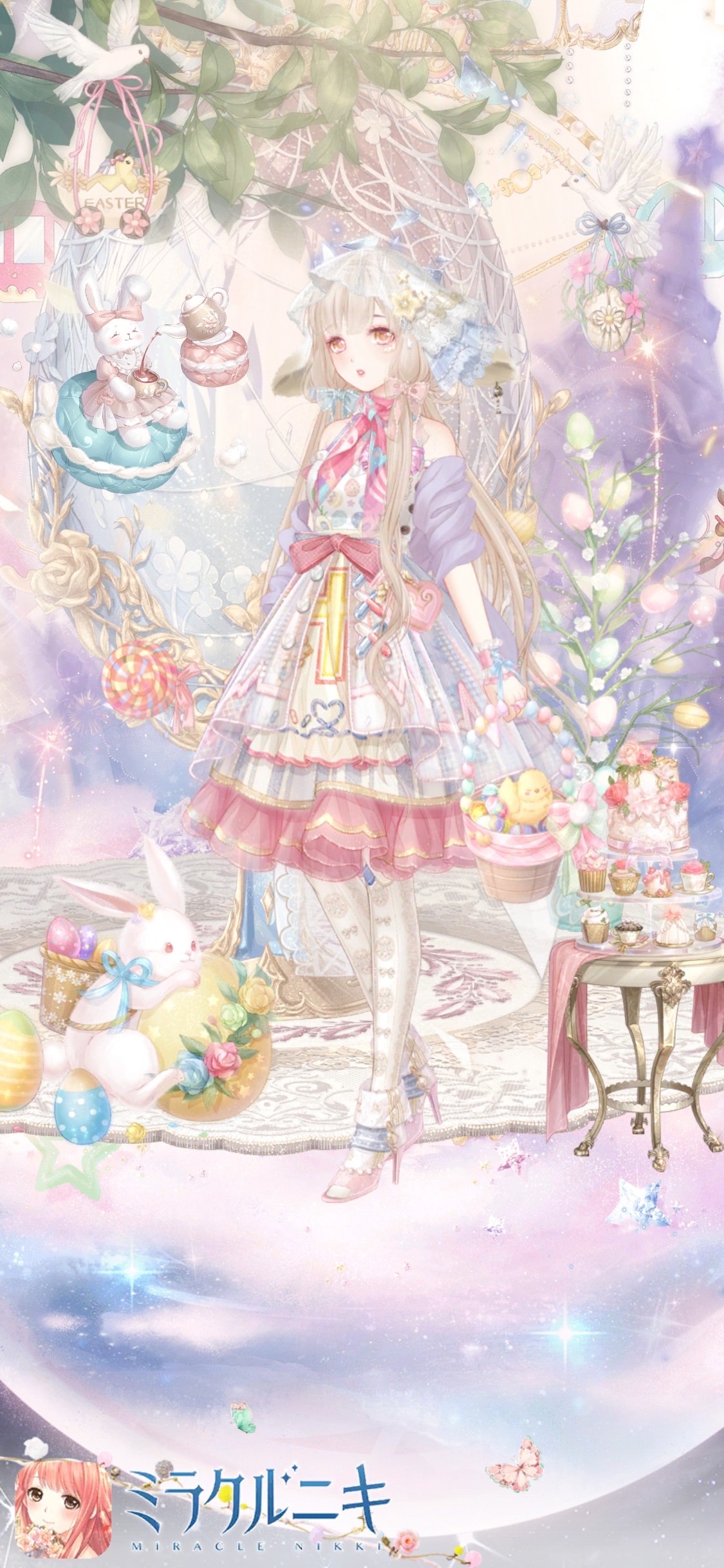 うさぎ少女のイースター風コーディネート。