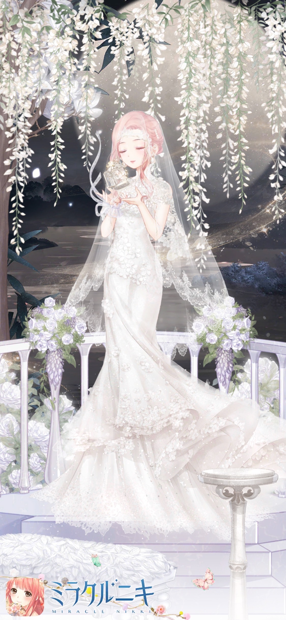 ドレスデザインに合わせて花柄レースの羽織りを用意。背景を夜にしてデザインを見やすくしてます。