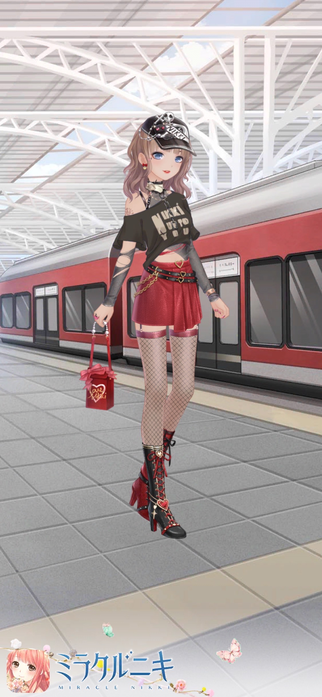 ハート型の付くアイテムを扱ったコーディネート。