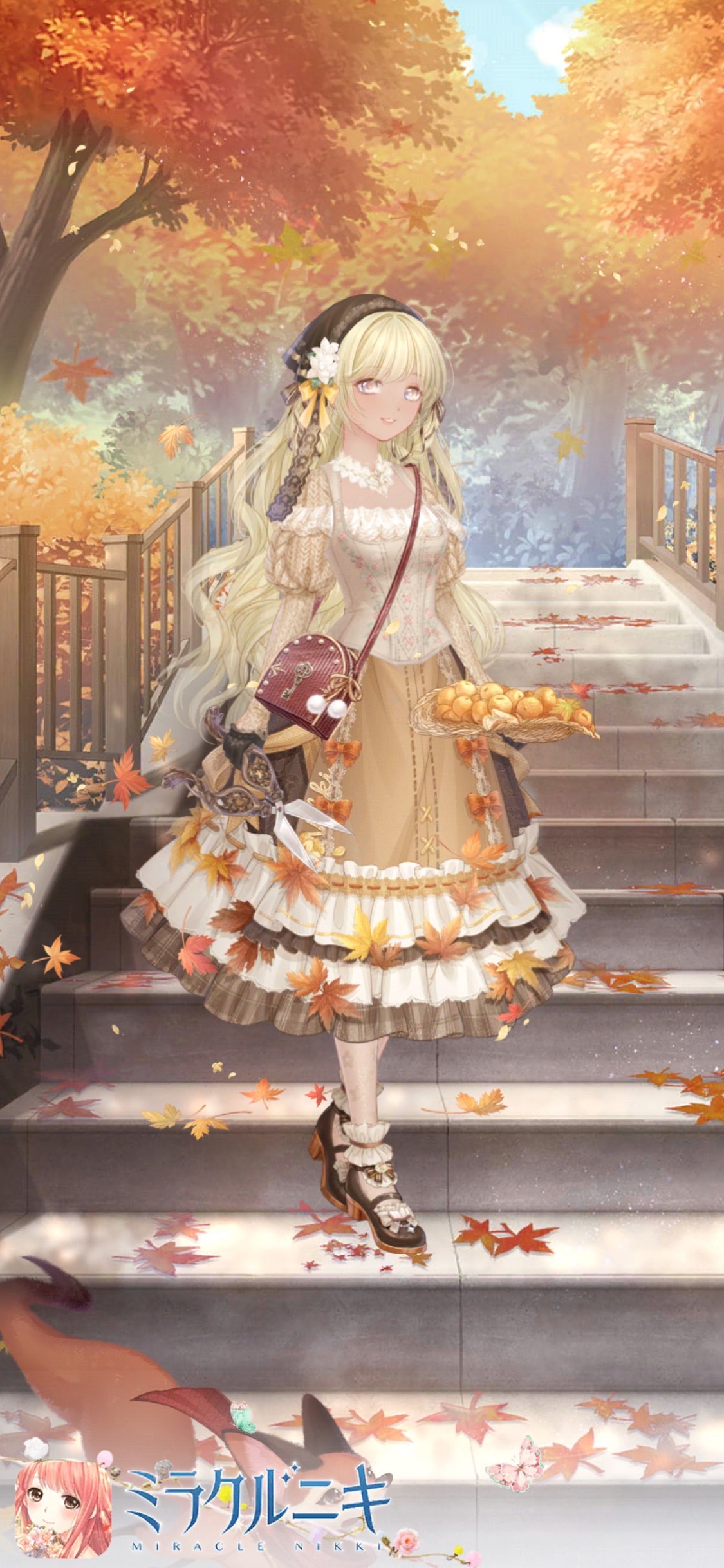 秋気澄む雰囲気の農家娘風コーディネート。