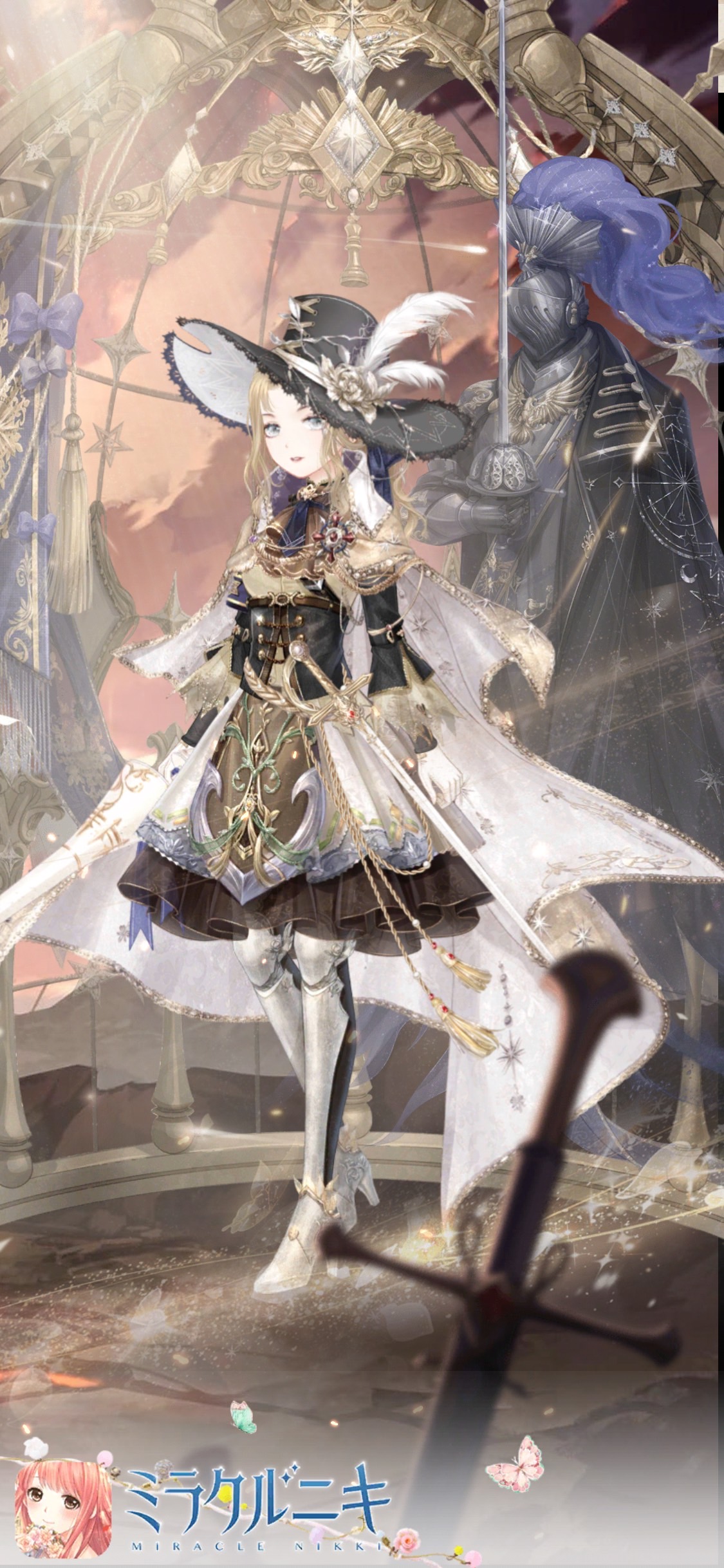 落ち着いた色合いに金属の艶が映える、騎士風コーディネート。