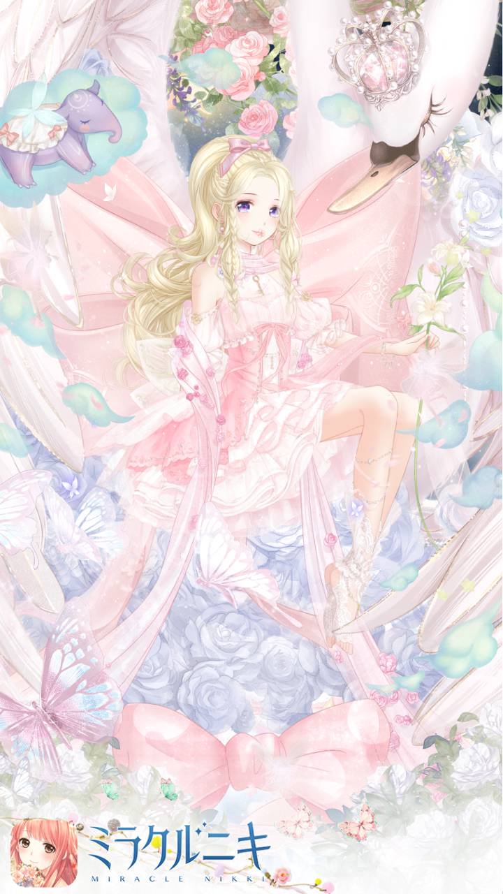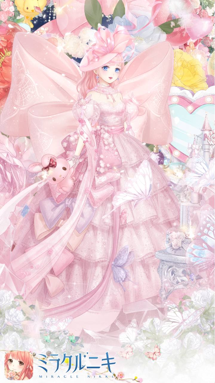 妖精が見た夢の世界というイメージのコーディネート。リボンとお花と大好きなみんなに囲まれた優しく甘い世界に。