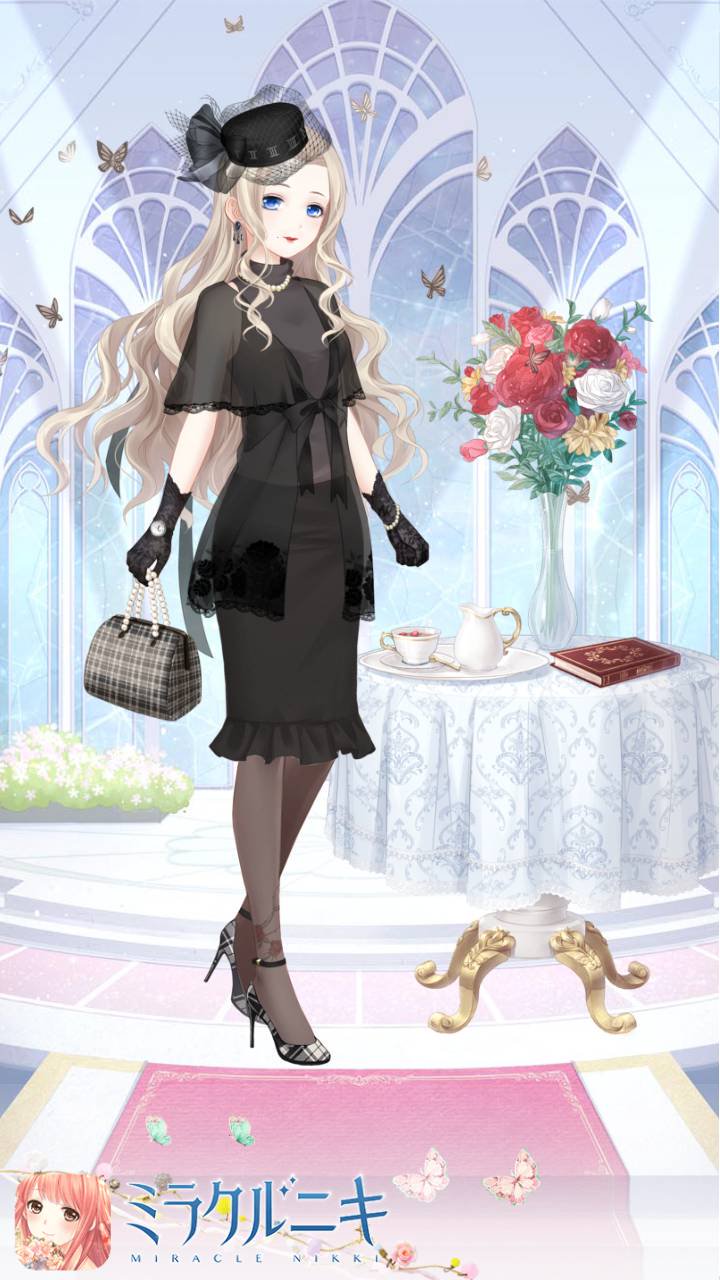堕天コーデ。全体的に真っ暗カラーなので所々ほんのり色づくドレスがより綺麗。