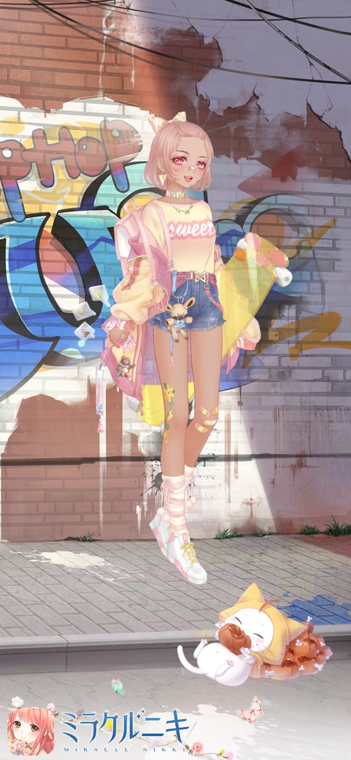 ポップで可愛いコラージュをモチーフにしたコーディネート。