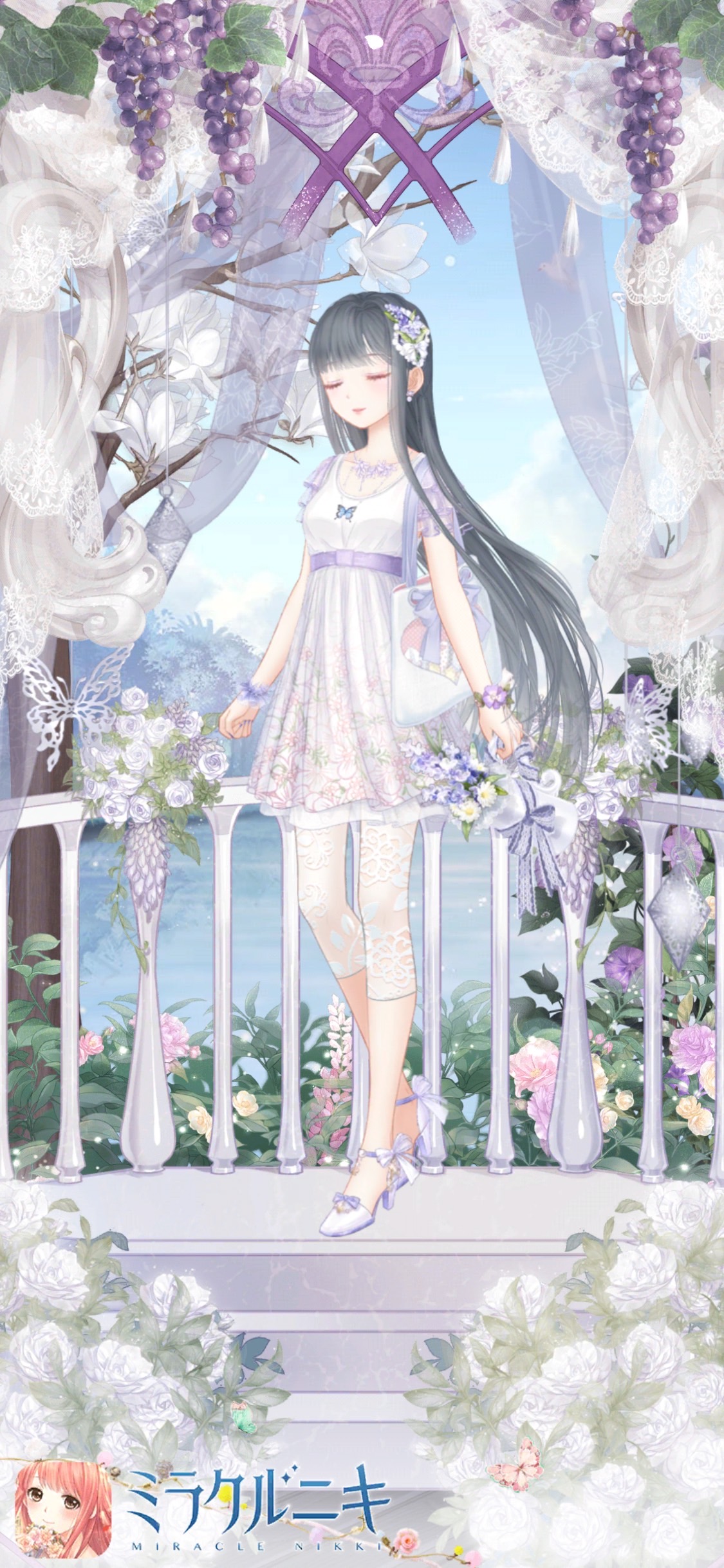 淡い紫と白を基調とした花アイテムでコーディネート。