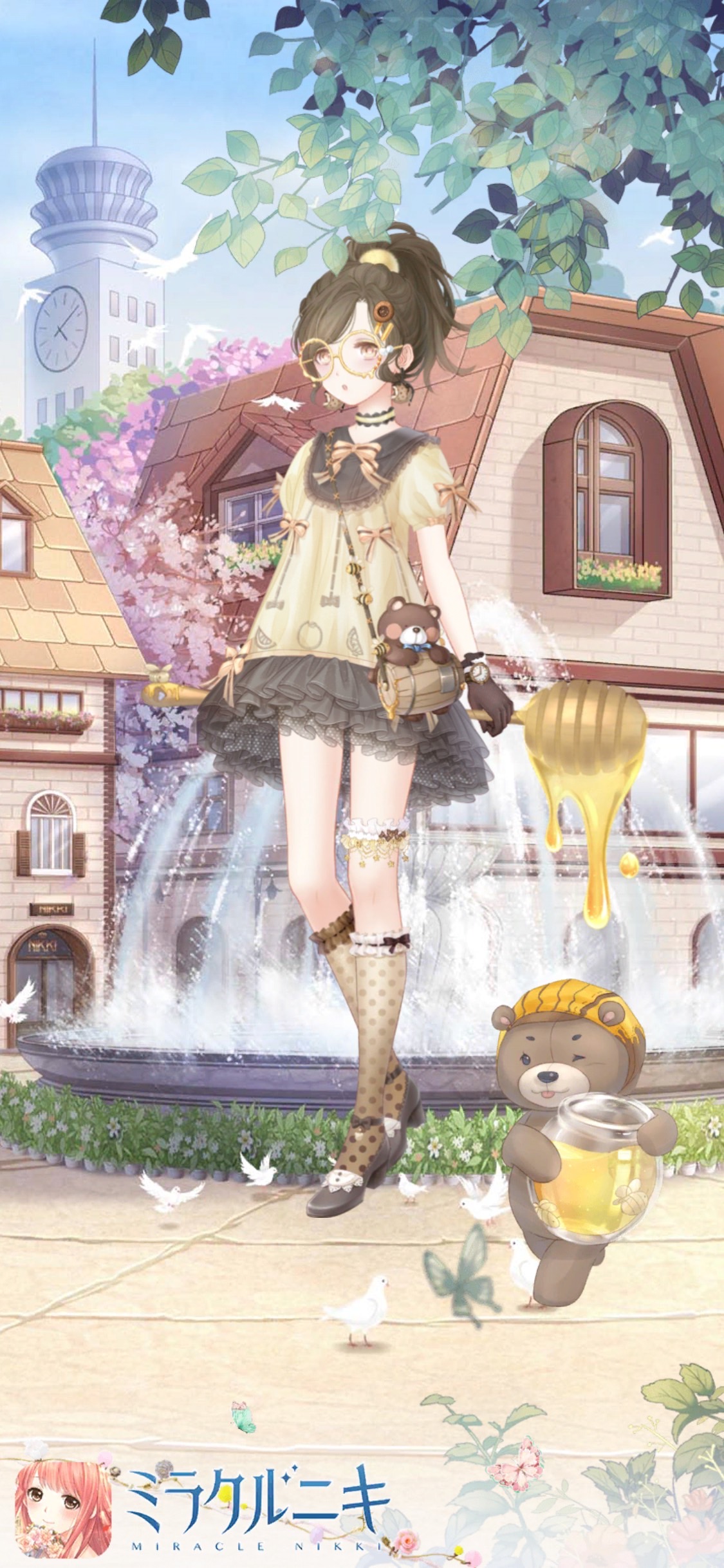 蜂のようなベージュ・ブラウン系でまとめた甘々コーディネート。