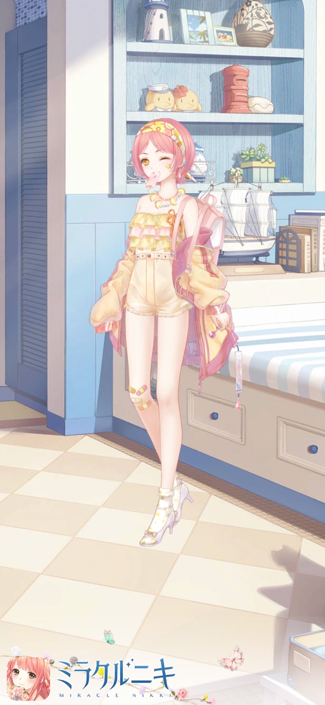 淡いオレンジ&イエロー系統のアイテムを使ったコーディネート。