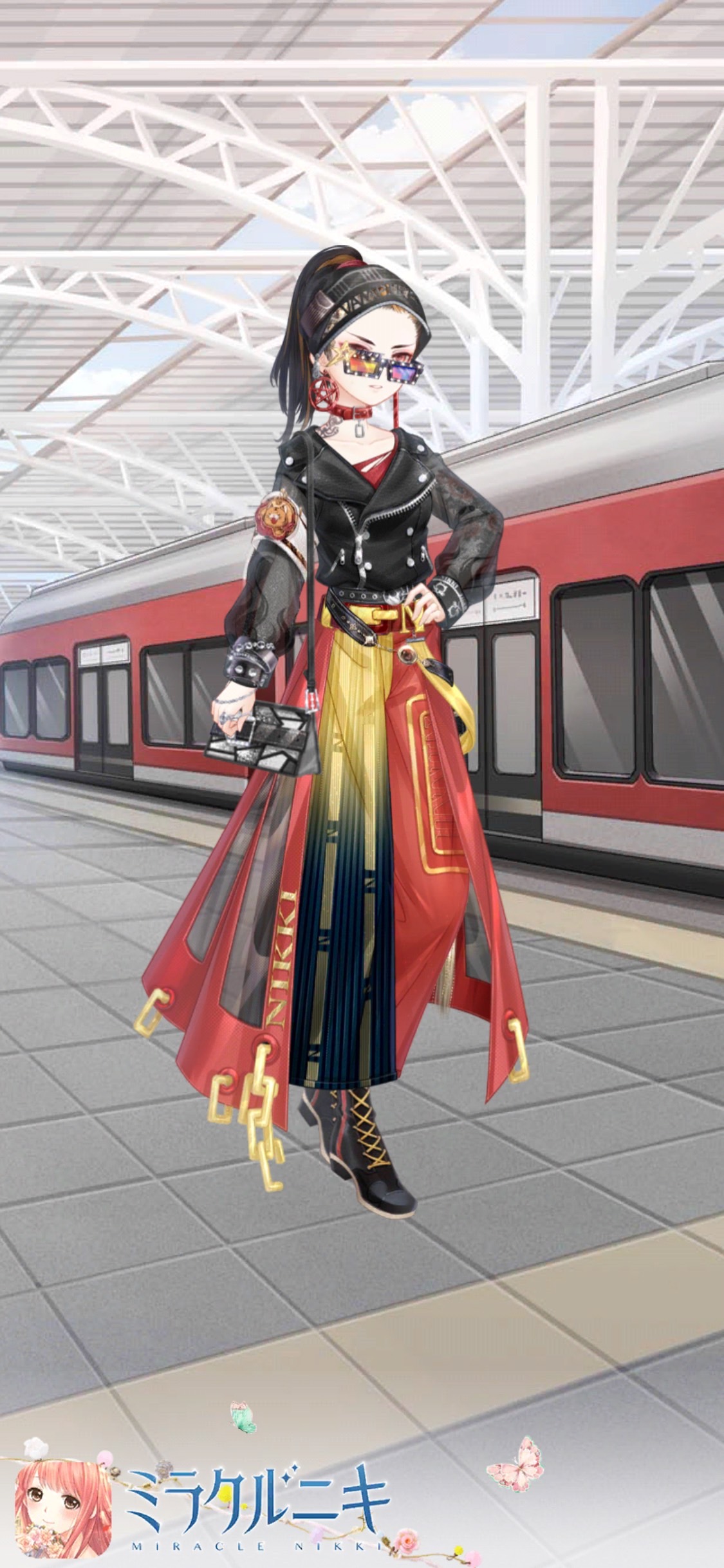 かっこいいヘソ出しスタイルに遊び心ある小物類でまとめてます。