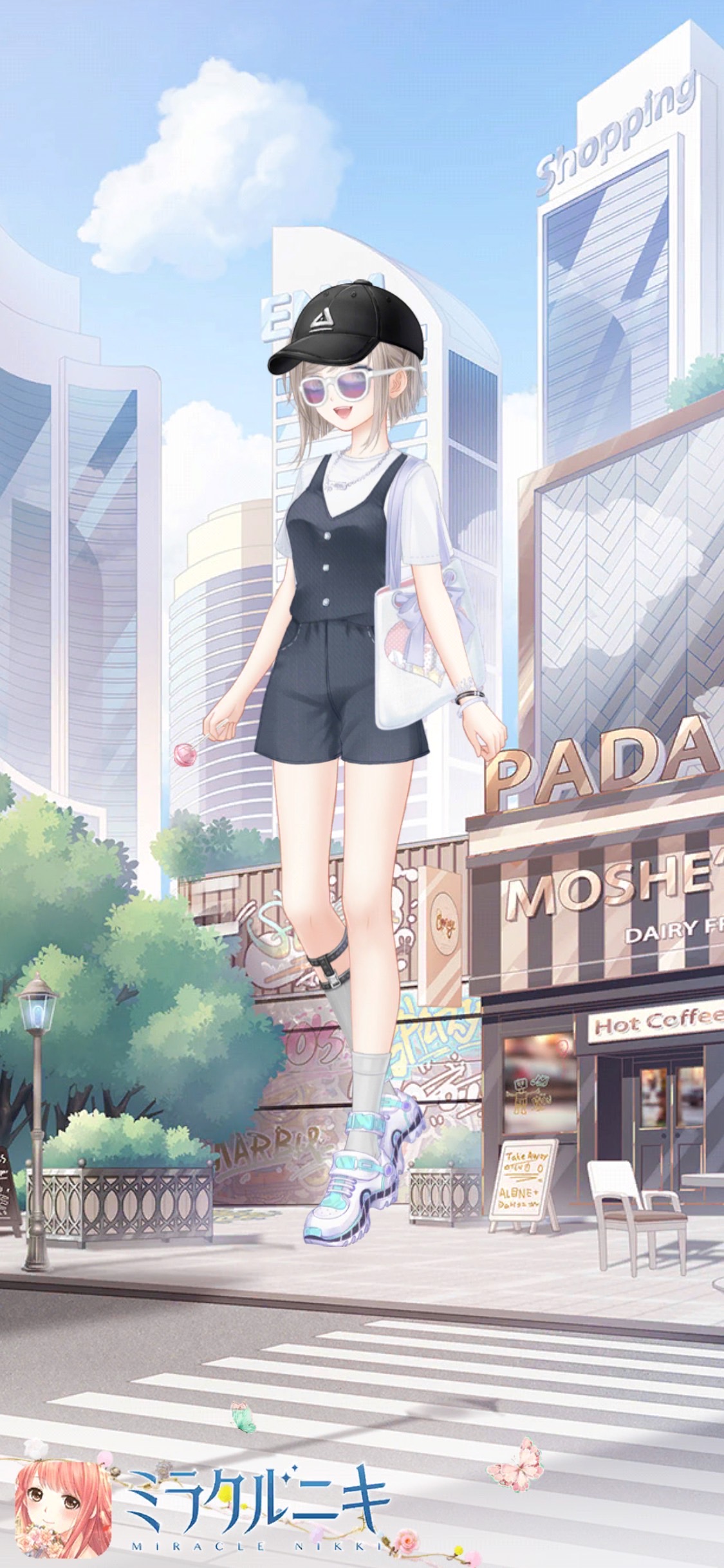 白黒系の服に寒色系アイテムのアクセントで可愛さも足してます。
