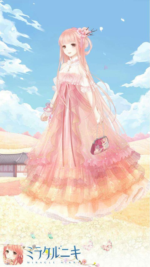 頭飾りと髪の結びが合うなーと思って、そこからコーディネートしてみた。春色で可愛らしく。