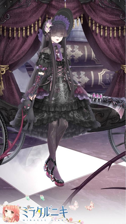 ゴスロリコーディネート。似た色で組み合わせて尚且つ無表情メイクで陰鬱な雰囲気に。