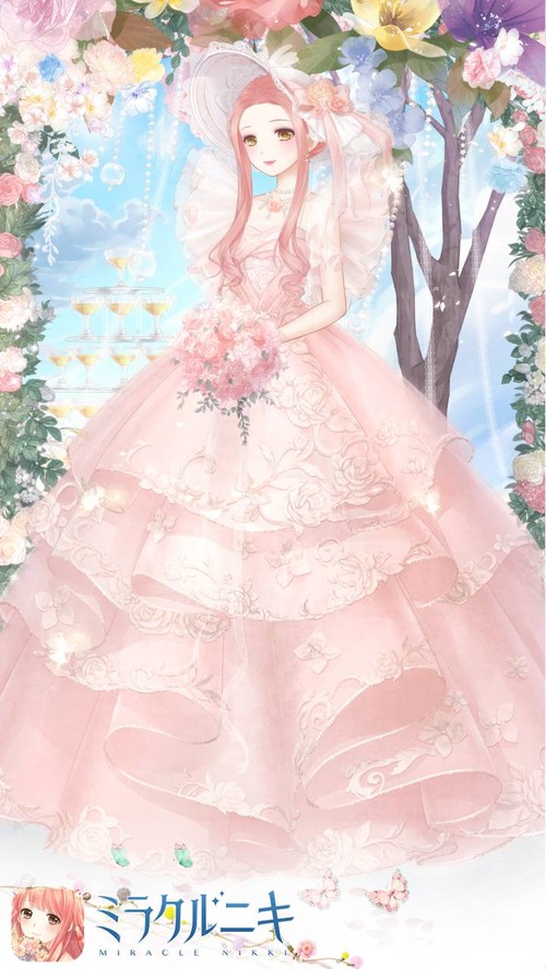 ほぼ桃色で統一されたフォーマルコーディネート。まさに王道。花に囲まれた可憐な女性になりました。