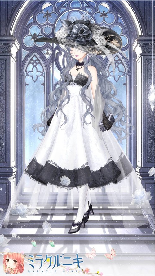 ほぼモノトーンにしたくてメイクも瞳がグレーのものに。表情も雰囲気にマッチしてるはず。