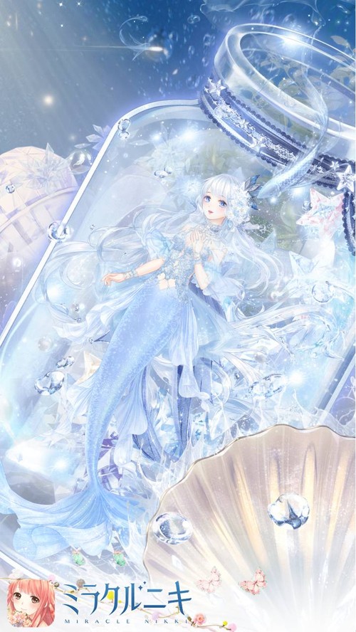 小瓶を使って人魚風コーディネート。海の上から降る光を浴びてるところをイメージして。