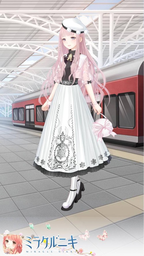 丸いもこもこの付いたアイテムを合わせてのコーディネート。鞄も丸く。