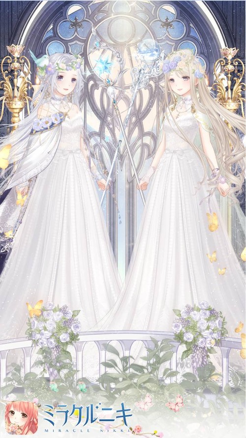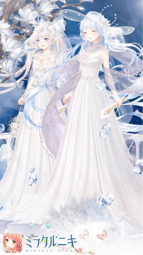 神坂仁さんとギルド戦アイテム(ドレス)GET記念ツーショットコーディネートです。わたしは白髪さん。