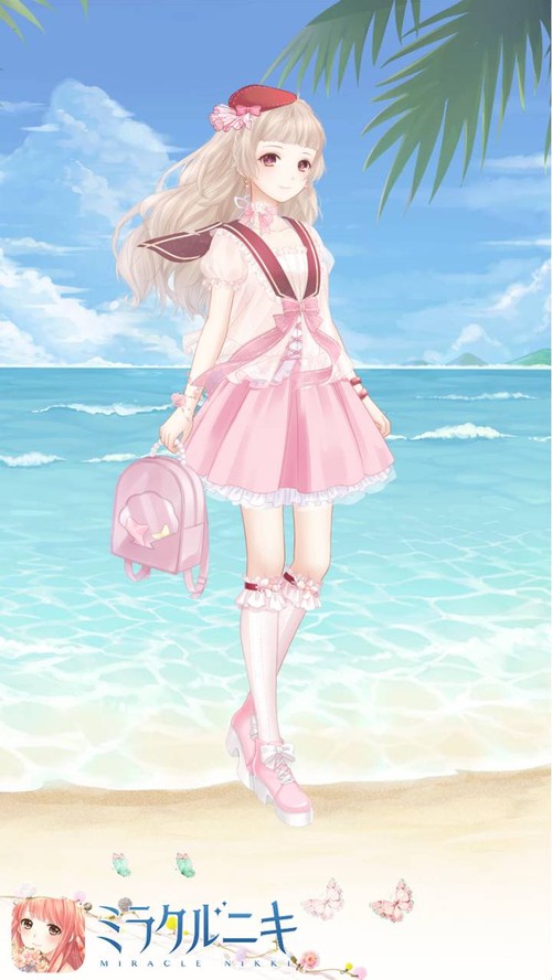 赤・ピンクでマリンコーデ。アウターのリボンとドレスの色が似てるので合わせたら可愛かった。