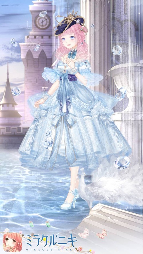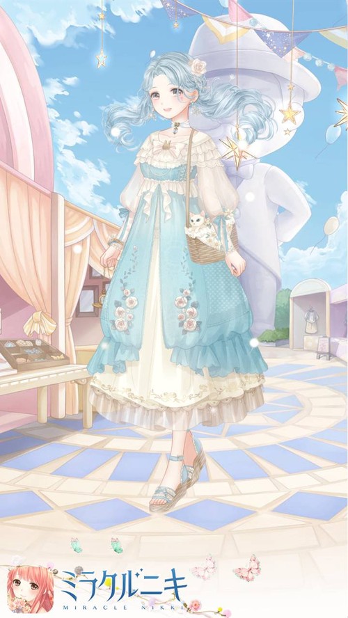 爽やかブルーのリリス服でお出かけコーディネート。髪が風でふわっとしてるように見えて好き。服の薔薇に合わせて髪飾りも白薔薇に。