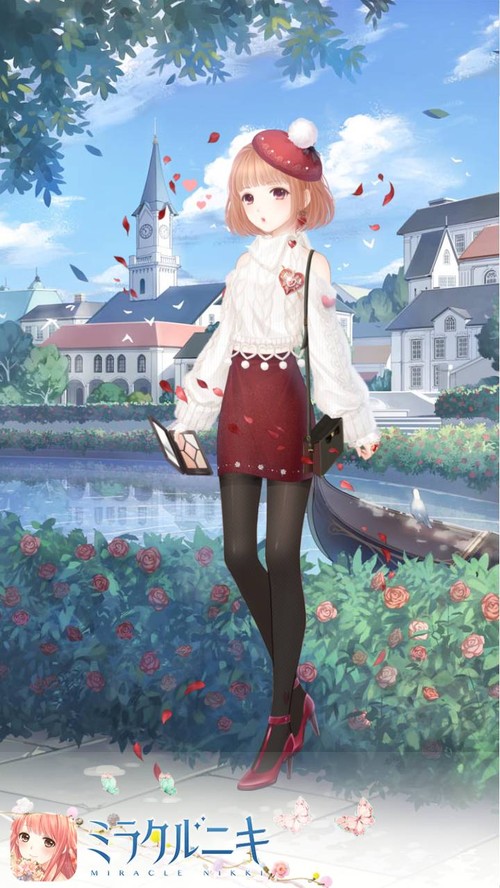 上はハートモチーフアイテムを使って可愛く、下はタイトスカートやハイヒールで大人っぽくしてます。