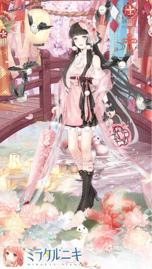 シマエナガさんたちと春散歩というイメージでコーディネート。桜と梅の花を使って春の前後感を醸しているつもり。