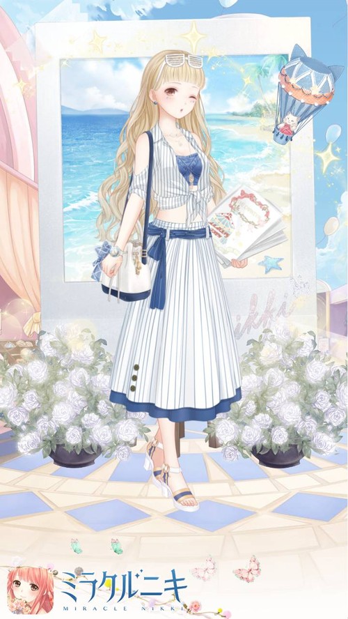 お姉さんのマリンコーディネート。靴やアクセサリーのゴールドが合っててお気に入り。