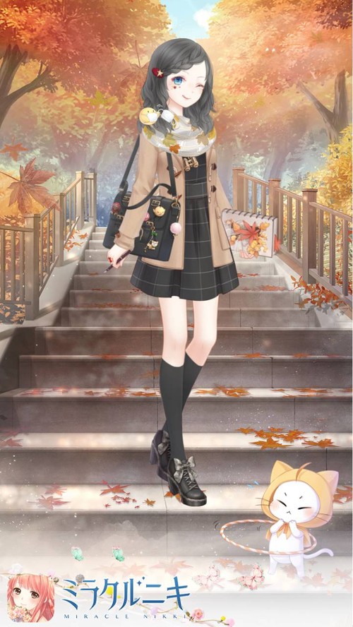秋の学生風コーディネート。ダッフルやハイソックスで学生らしくしつつも目元にキラキラ付けたりとお遊びも。