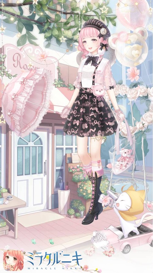 白黒ピンクで可愛らしいコーディネート。アイドルかのよう。
