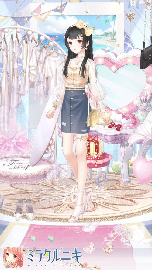 ハートバッグにするか悩んだけど、コーデのイメージ的に大きめより小さめバッグが合うのでリボンバッグにしました。
