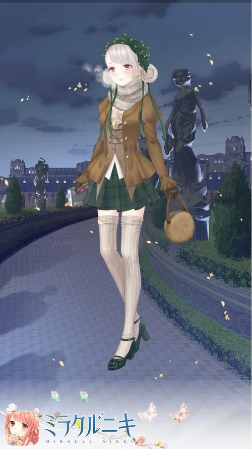 秋の冷え込んだ夜のコーディネート。茶&緑色で合わせてます。