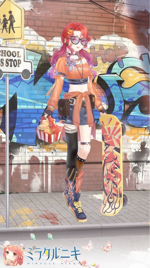 オレンジ色をメインにしたスポーティなストリートコーデ。