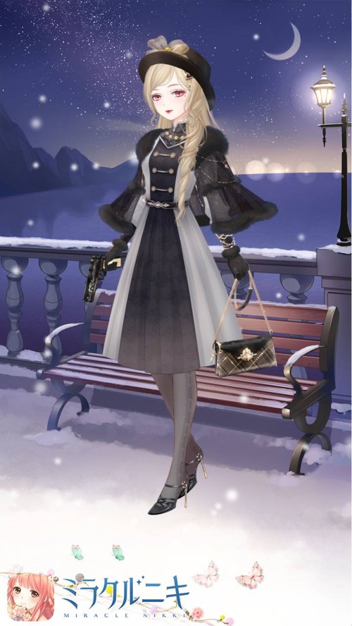 全体モノトーンにゴールドの金具が映えてゴージャスさを醸してます。イエローのネックレスもポイントになって好きです。