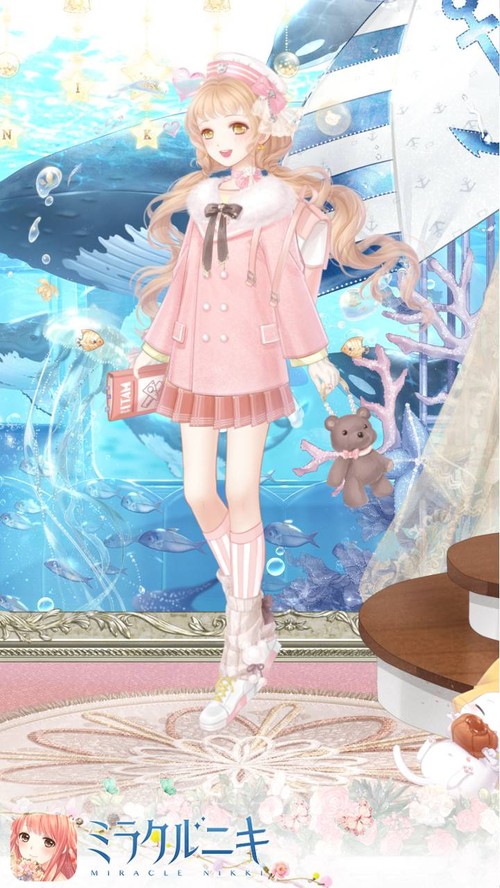 ピンク系の色で冬マリンコーデ。