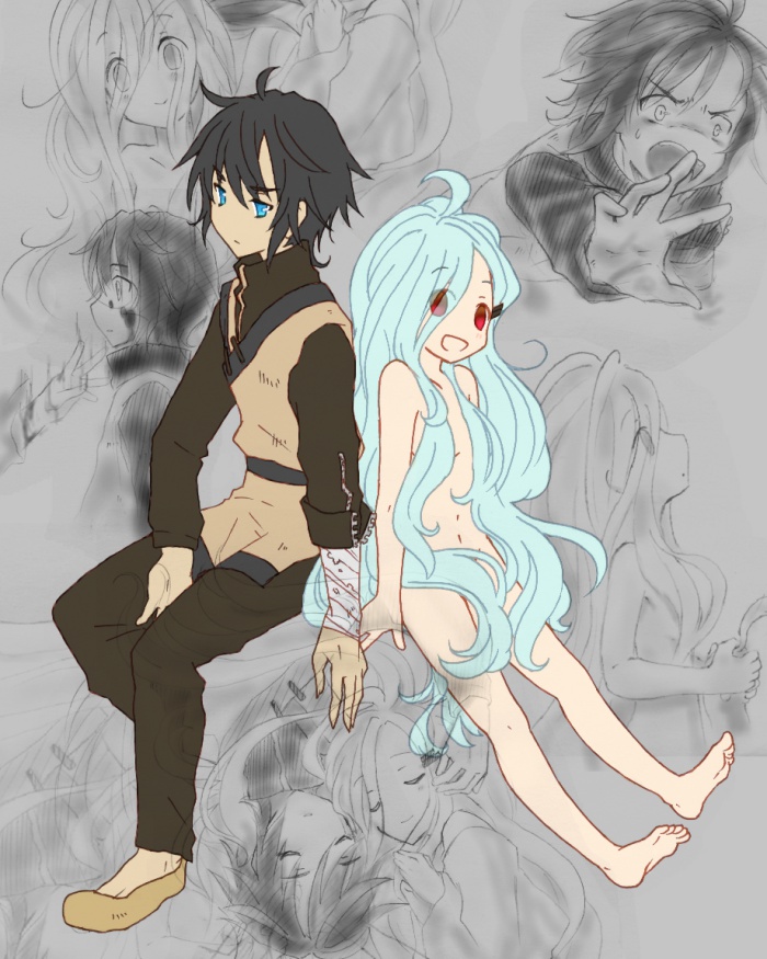 頭の中にふわっと現れた話を一枚に凝縮したもの。 狼くん(左)が盲目の孤児である兎さん(右)と少しずつ距離を縮める感じの話でした。