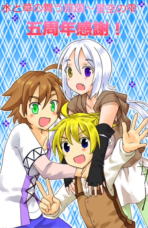 別館の携帯サイトが開設して5年の時に描いた新規主人公3人。 ……のはずがなぜか32のレヴァルが入れ忘れられたという可哀そうなエピソードがあります。ごめん。