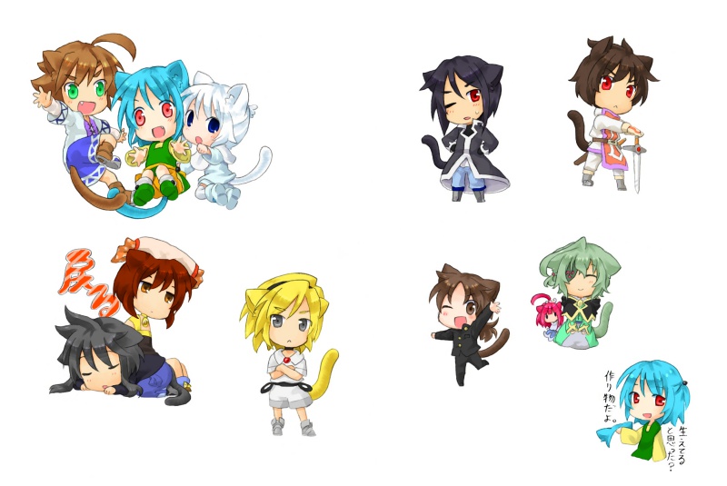 携帯サイトの猫の日用ページに使った絵です。 それぞれの項目に一匹ずつ一番下に戻るを配置し、次の日につけ耳でしたとルカにネタばらししてもらったやつです。