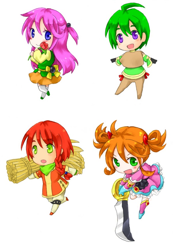 キャラ:上段 イルナ(1の世界)、譜悠(11の世界) 下段 エリオット(10の世界)、リュンヌ(15の世界)