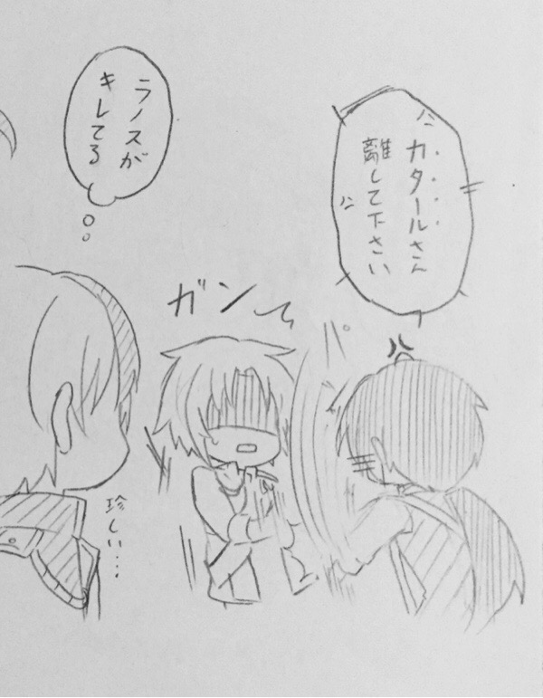 あんまりくっつくのでラノスが怒ってます。