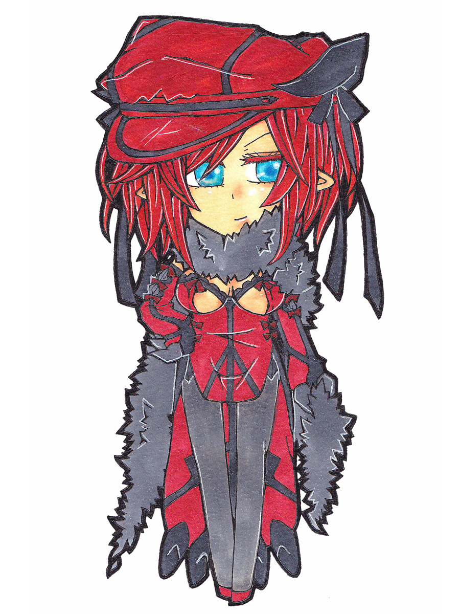 髪瞳:緋色/水色