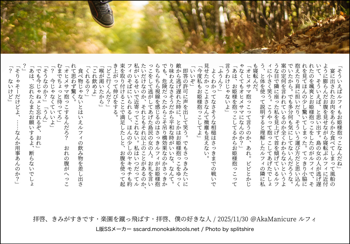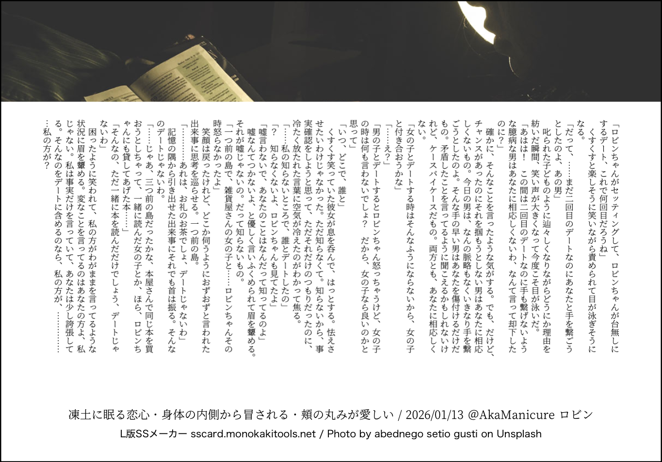 全部のお題を使えなくてもいい。書くのに飽きたら話が中途半端だろうとそこで強制終了。な適当ルールの文章練習あそび。(